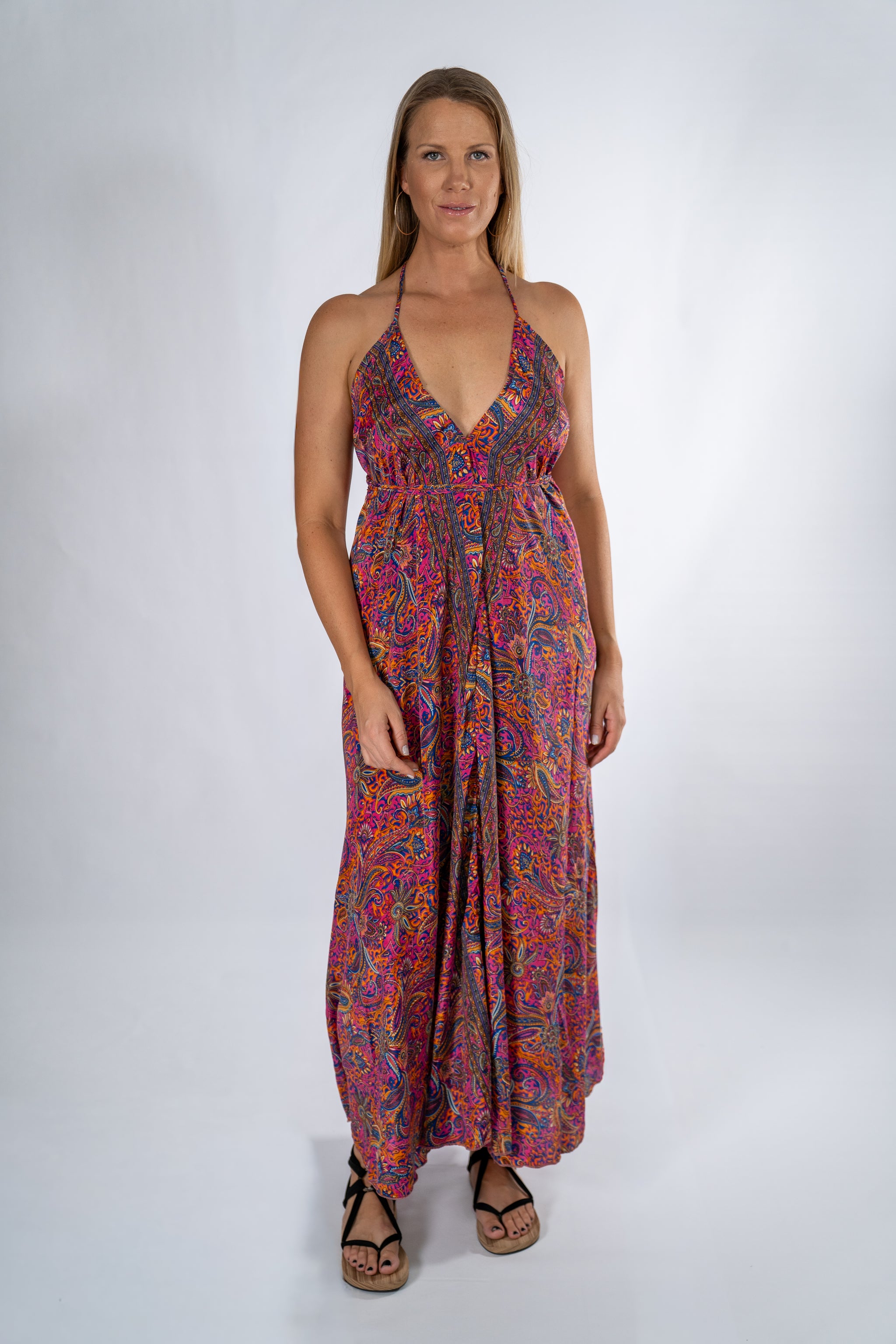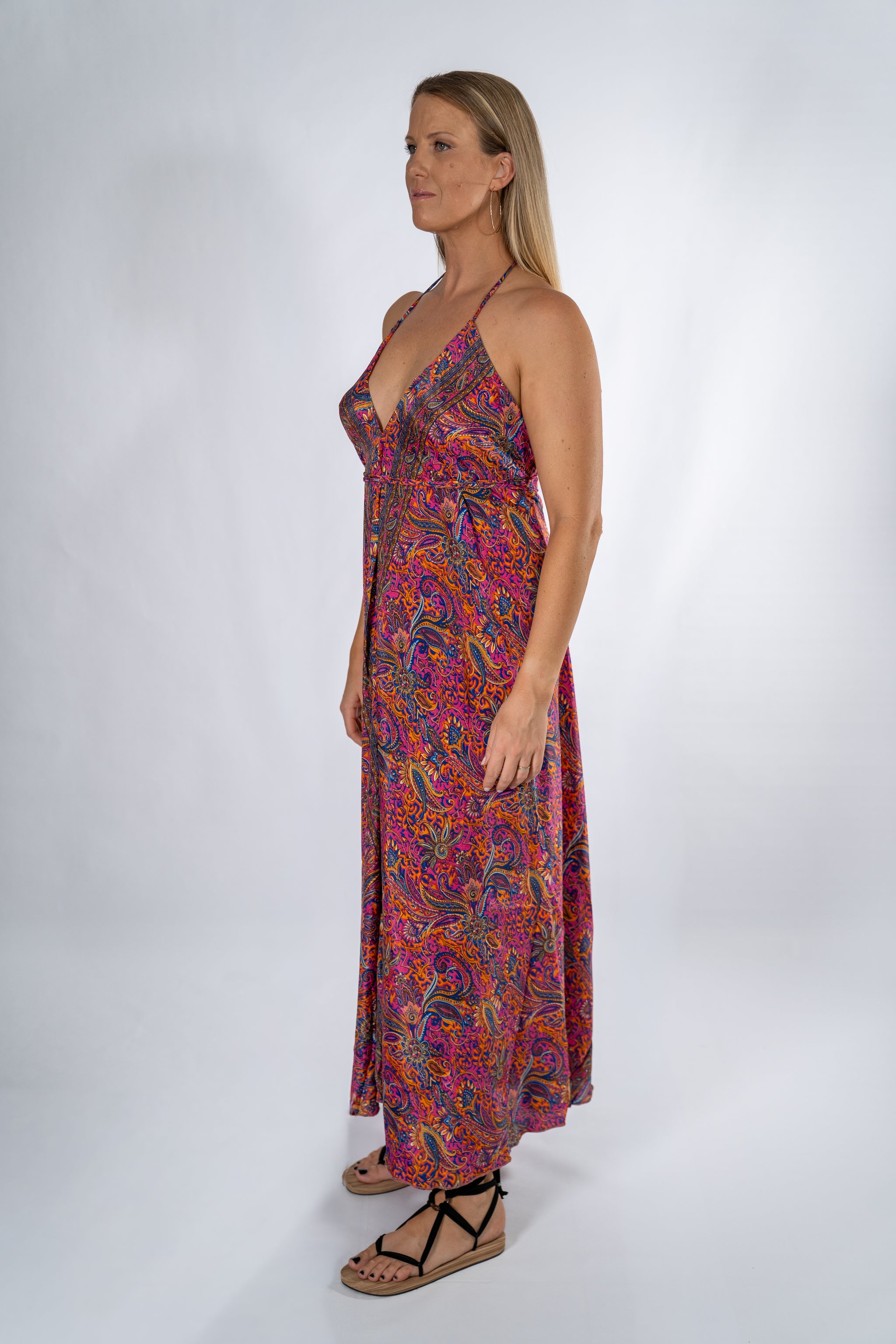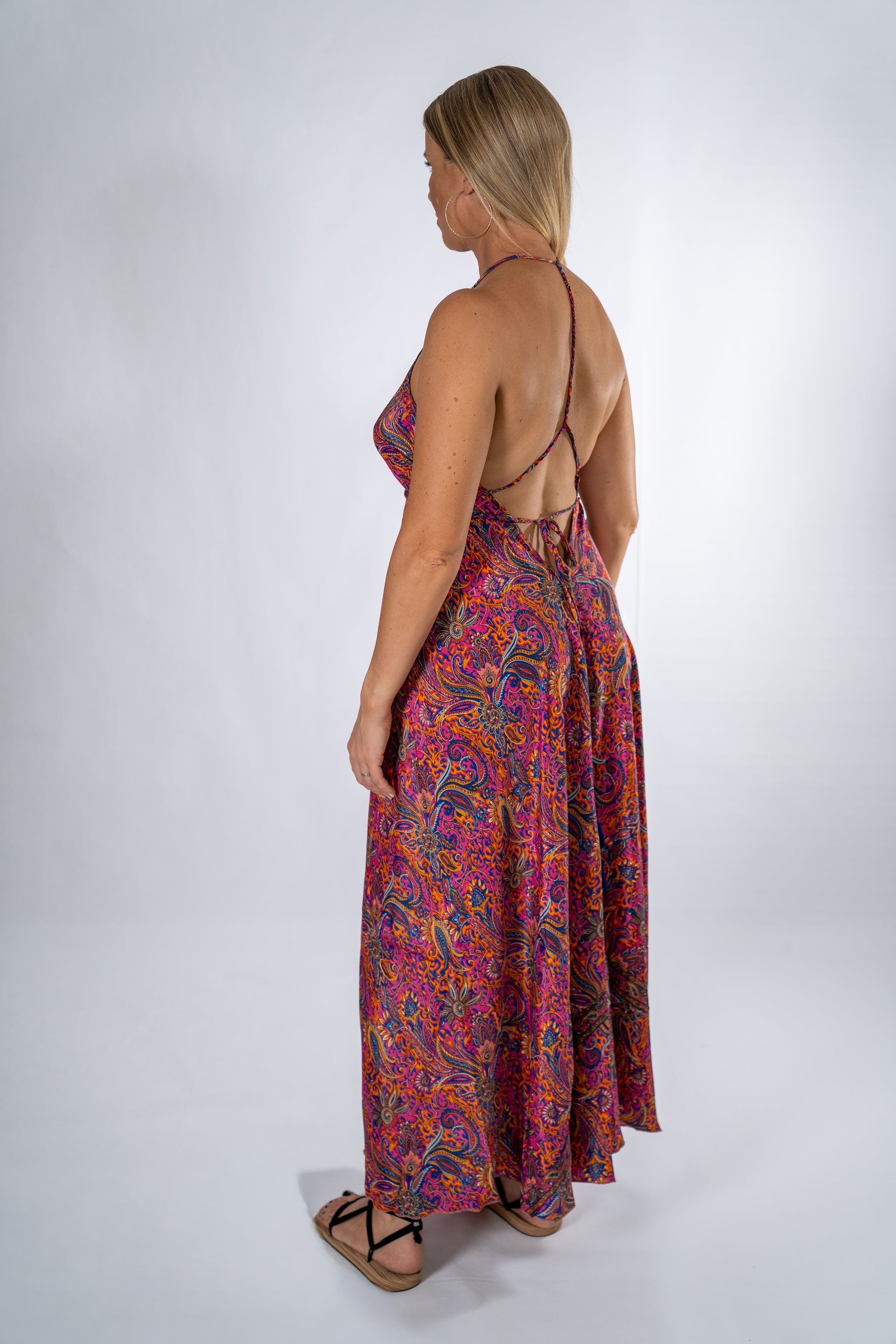 My flagship dress, a classic and inspiration for all my designs. Flowing with a deep open “V” back and soft “V” neckline complimenting the curves of your body. Decide how you tie it, keeping it loose you belting it up with ultra long tie. From Beach to Dinner, feel glamorous and free as it floats as you move.
